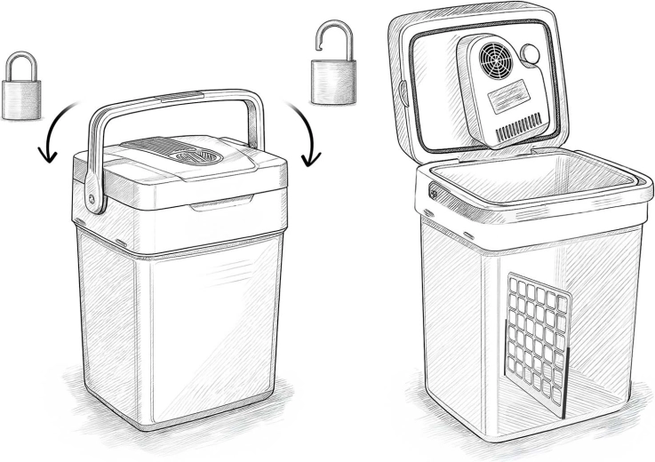 Det køler ned til 18 °C under omgivelsestemperaturen og kan i opvarmningstilstand holde retter op til 65 °C. Det praktiske sammenklappelige håndtag fungerer også som lågstøtte, låsen ved lodret håndtagsposition forhindrer, at låget åbner under transport, og den indvendige skillevæg hjælper med at organisere indholdet. I ECO-tilstand imponerer den med meget støjsvag drift (26 dB), så den ikke forstyrrer – heller ikke om natten.