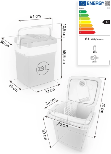 BERDSEN Icemax er et let og kompakt elektrisk køleskab med en kapacitet på 29 liter, der holder dine madvarer og drikke perfekt afkølede. Det har dobbeltvæggede sider for førsteklasses isolering, indbygget ventilator for jævn luftcirkulation og et overskueligt elektronisk display med temperaturregulering og valg af ECO/Normal. Takket være dobbelt strømforsyning – 12 V til bil og 230 V til stikkontakt kan det bruges når som helst og hvor som helst.