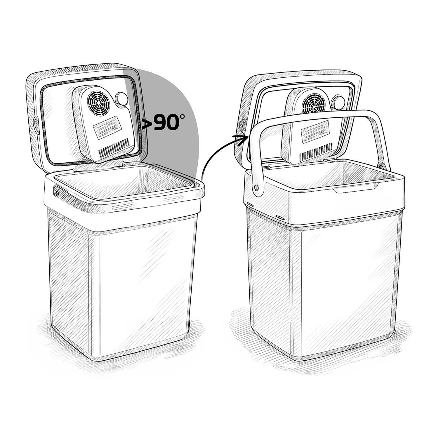 Takket være dobbelt strømforsyning 12 V / 230 V kan den bruges både i bil og hjemme. Dobbeltvægge og aktiv ventilator sikrer jævn luftcirkulation og stabil temperatur. Gennemtænkte detaljer som sammenklappeligt håndtag, låsefunktion i låget under transport, støttefunktion i håndtaget ved påfyldning og aftagelig skille-/delingsrist øger komfort og sikkerhed.