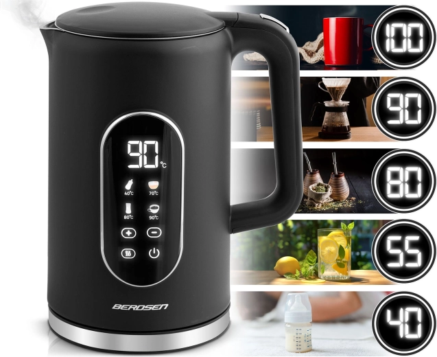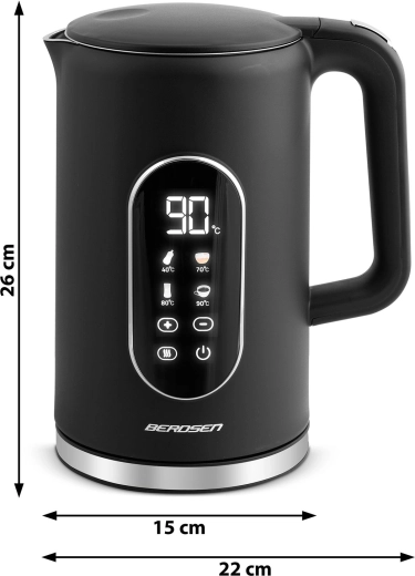 Nyd perfekt tilberedte drikke takket være præcis temperaturregulering: forvalg 40/70/80/90/100 °C samt fine trin på 5 °C gør det muligt at opvarme vandet præcist til te, kaffe eller drikke til børn. Holde-varm funktionen holder vandet varmt i op til 2 timer, mens det baggrundsbelyste touchpanel gør den daglige betjening nem.