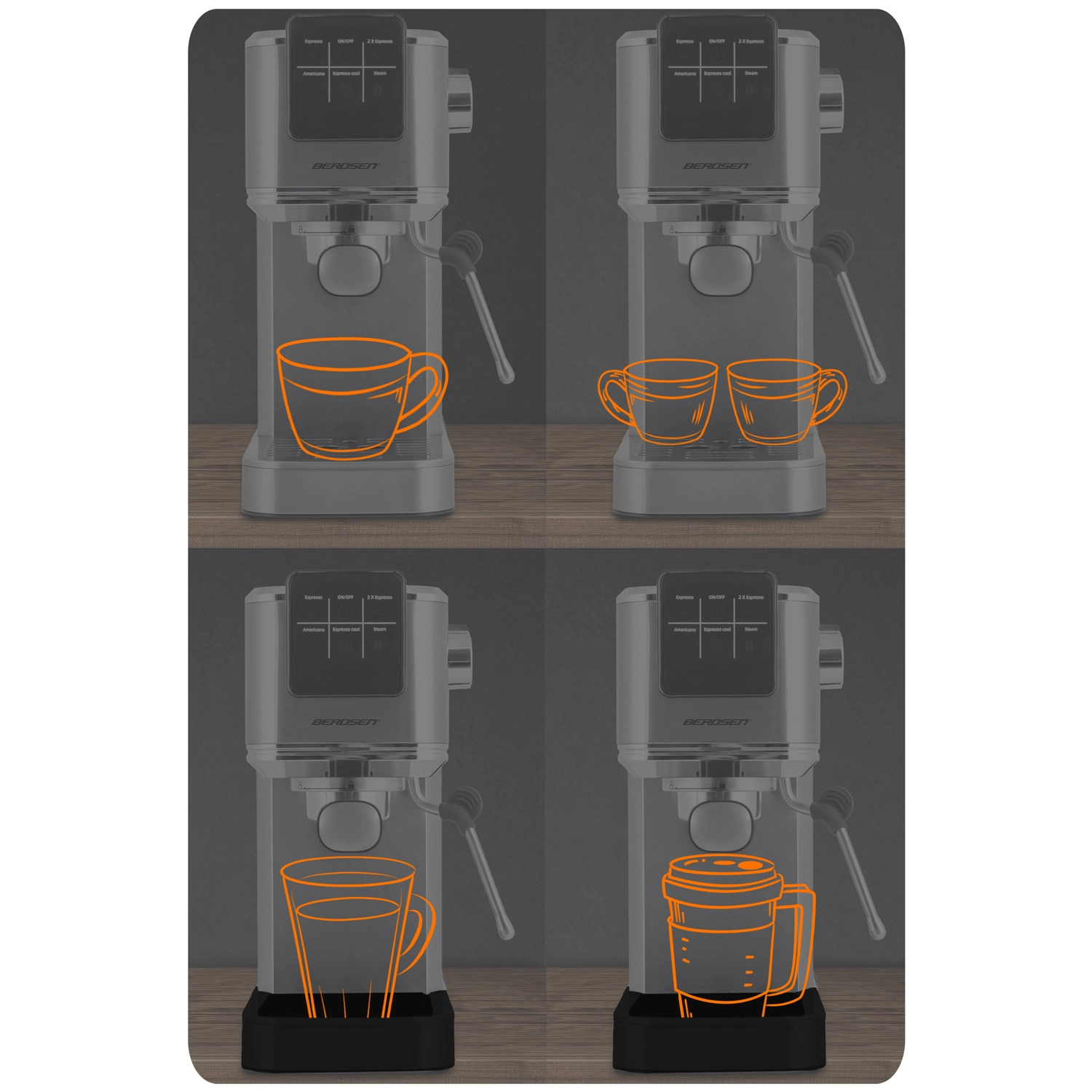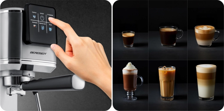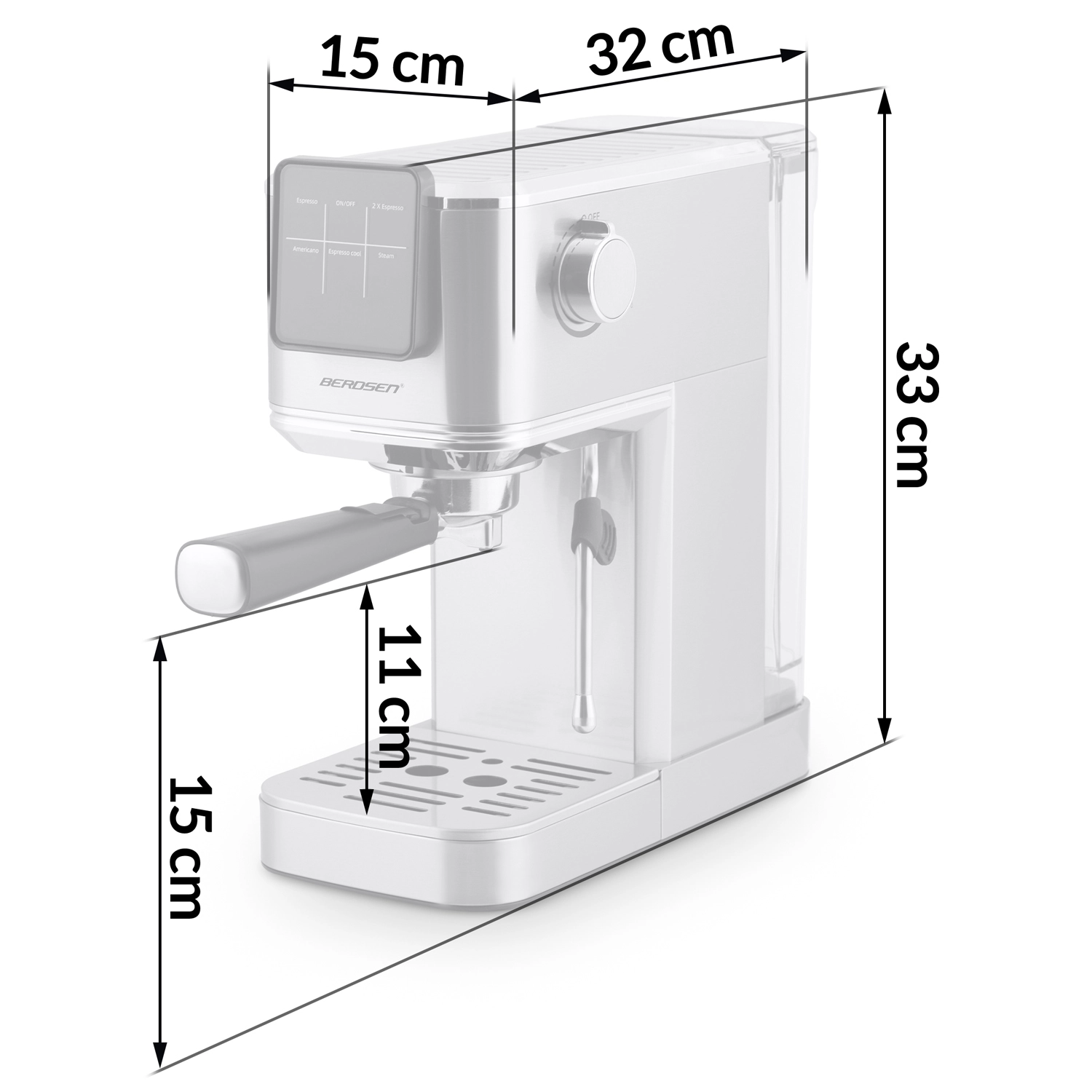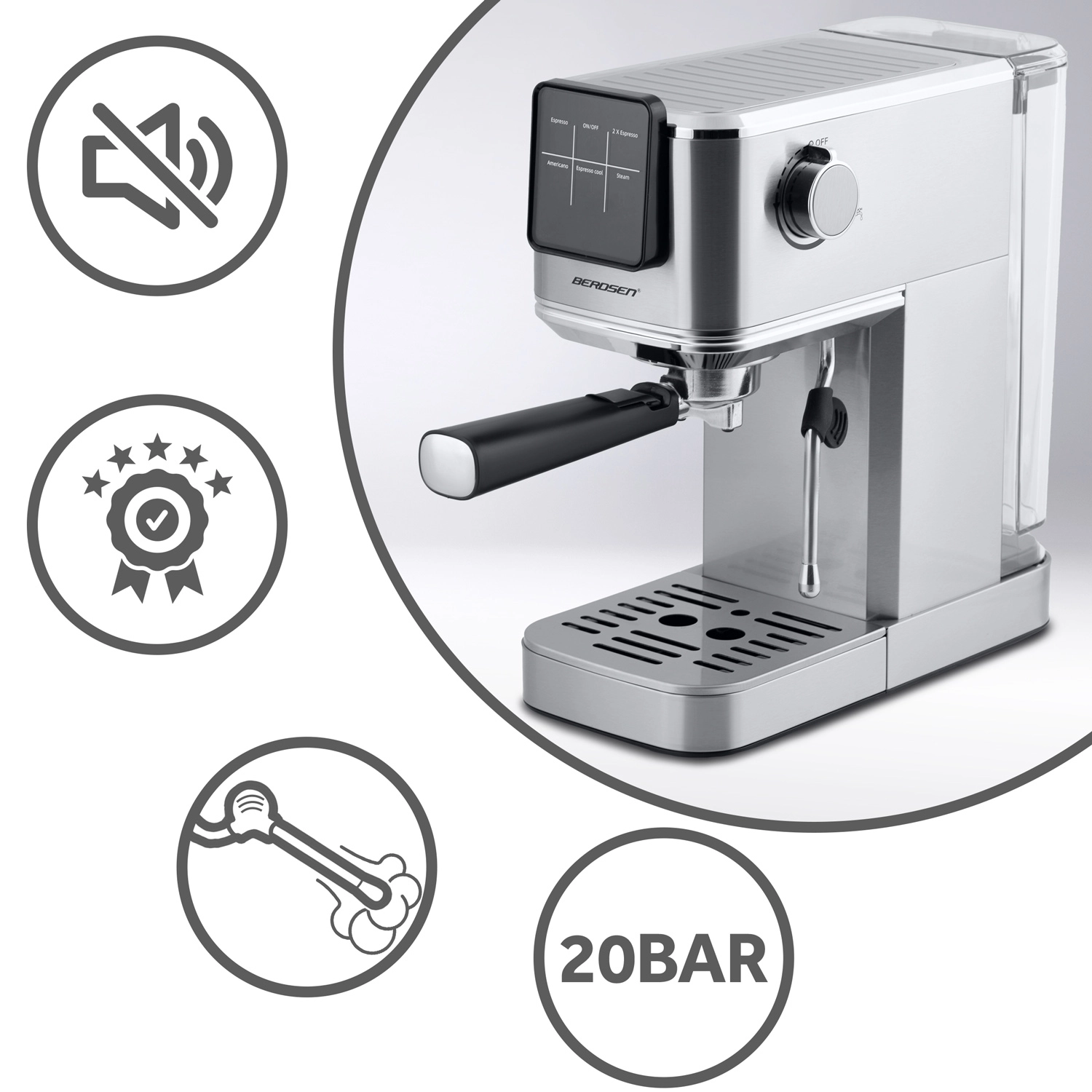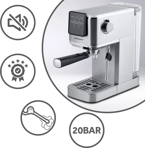 Forvandl dit køkken til et hjemmebarista-hjørne. BERDSEN espressomaskinen med 20 bar og præcist ekstraktionssystem udnytter det maksimale af smag og duft fra friskkværnet kaffe. Touchbetjening giver hurtig valg af espresso, cappuccino, latte eller americano – og med funktionen cold espresso laver du på ingen tid en forfriskende iced latte eller espresso tonic.
