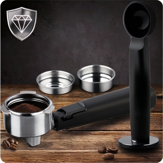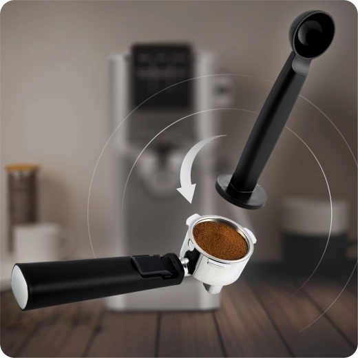 - Måleske med 2-i-1 tamper, portafilter med dobbeltafløb