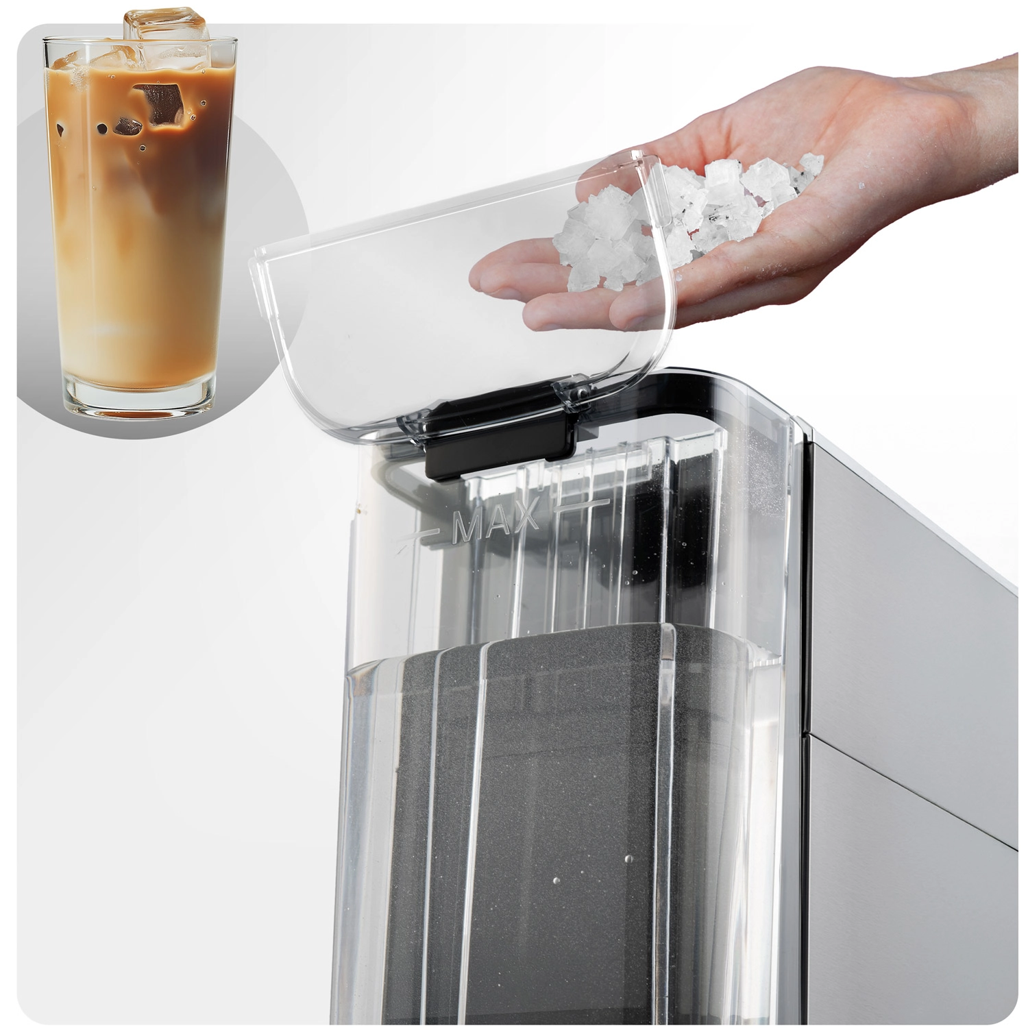 En stærk pumpe og metalhus sikrer fuld smag, lang levetid og et elegant look på køkkenbordet.
