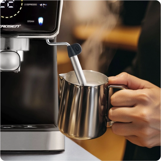 Den rustfri damparm laver tæt, fløjlsblødt skum til cappuccino, latte og flat white. Aftageligt design for nem rengøring.