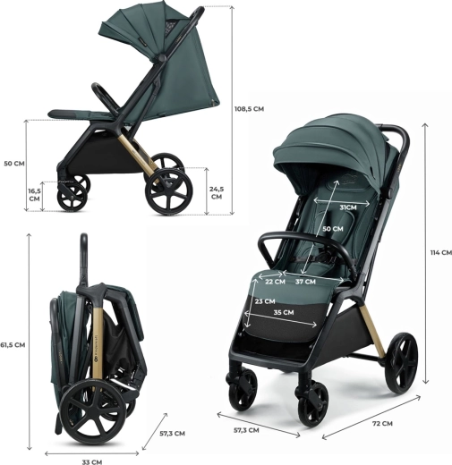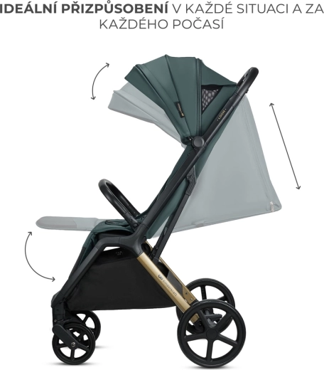 - Fuld komfort for barnet – trinfri justering, 2 niveauer af fodstøtte, beskyttende kaleche.