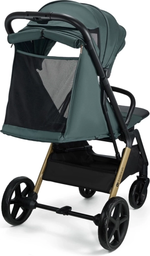 Kaleche med lynlås og solskærm beskytter mod vejret, og ventilationspaneler i kalechen og bagtil forbedrer luftcirkulationen.
