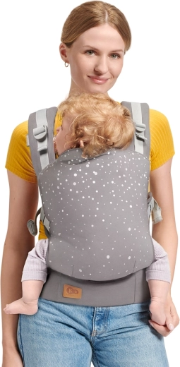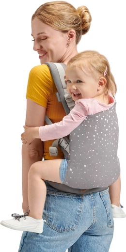 Det innovative panel med trinvøs justering af højde og sædebredde vokser med barnet. Velegnet fra 3 måneder og op til 20 kg til bæring på maven og på ryggen.