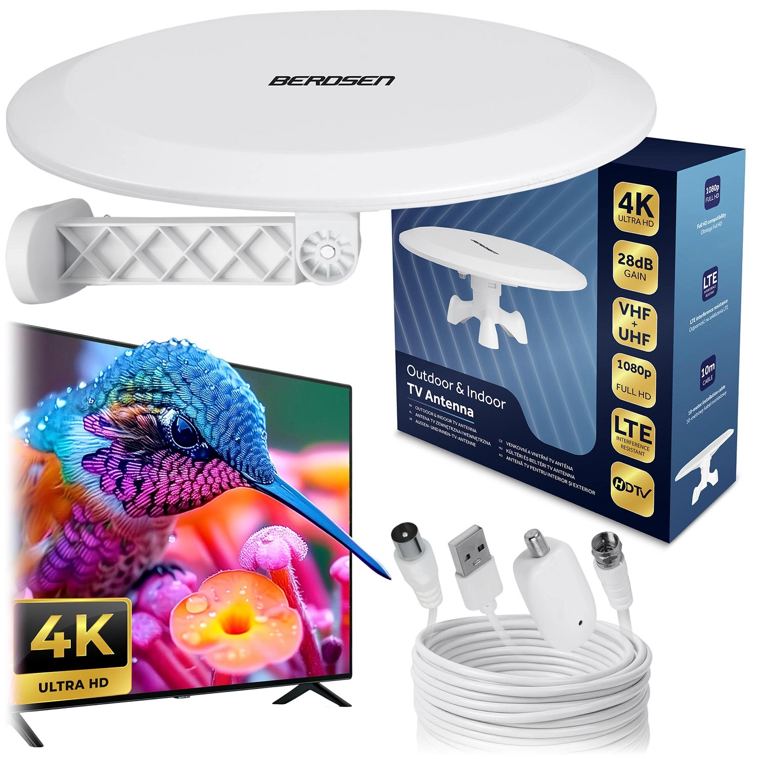 Indendørs og udendørs TV-antenne BERDSEN Ultra HD 4K hvid
