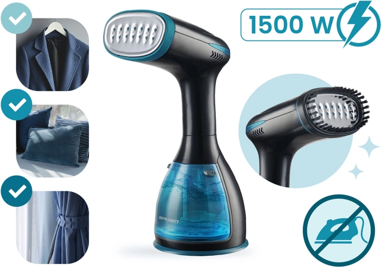Kraftfuld og stilfuld håndholdt steamer fra BERDSEN med effekt på 1500 Wstærk dampydelse på 32 g/min, stor aftagelig vandtank på 280 ml, nem betjening med én bagbelyst knap samt tilbehør i pakken. Dampen frisker effektivt tekstiler op, hjælper med at reducere bakterier og husstøvmider og er ideel også til polstring og frakker.