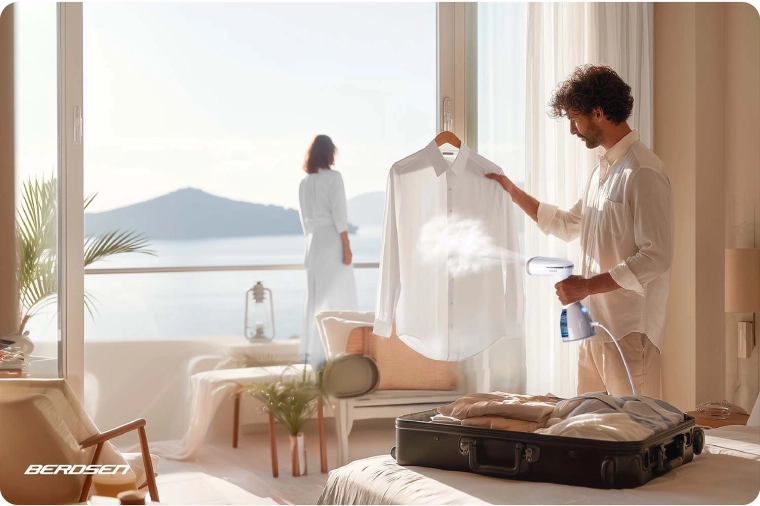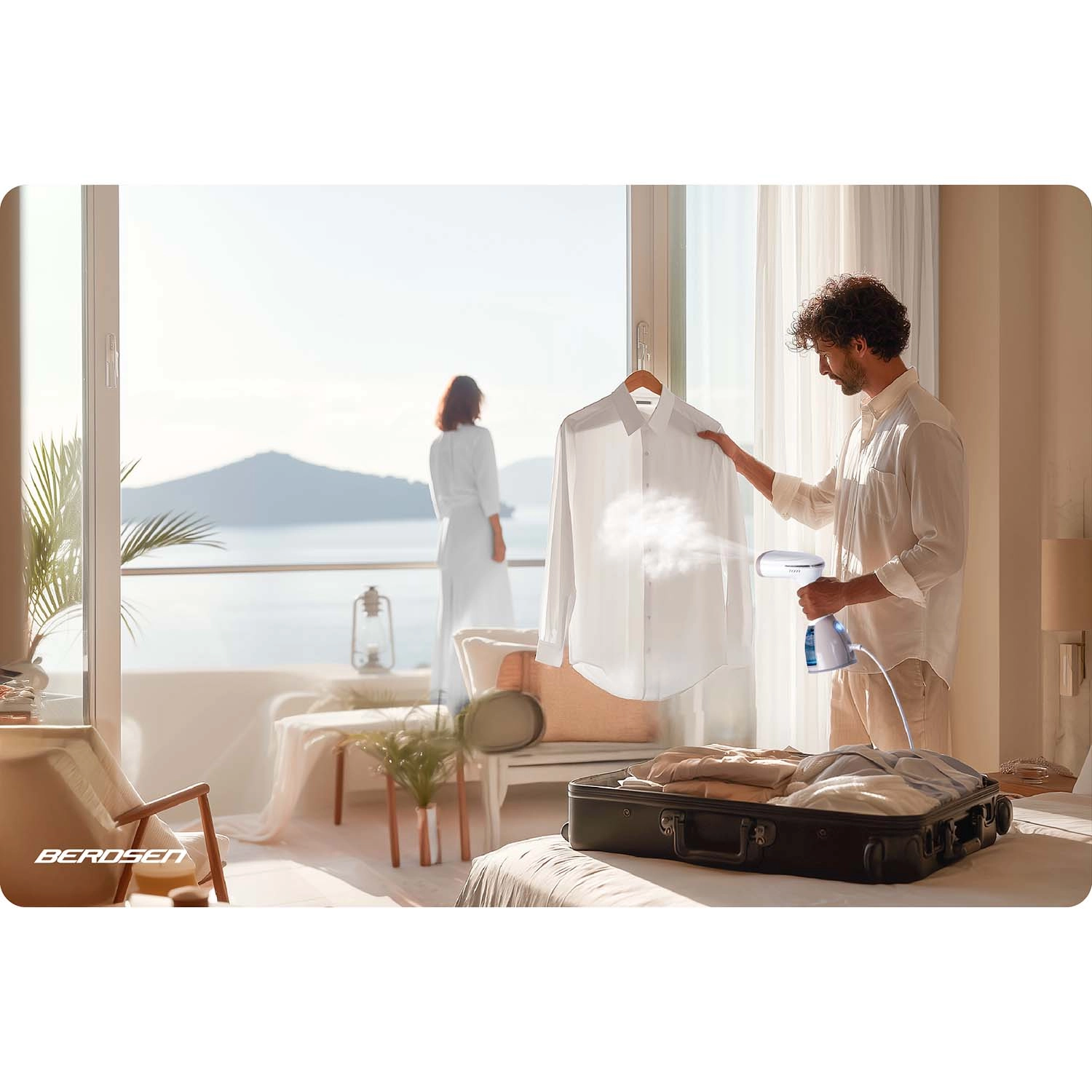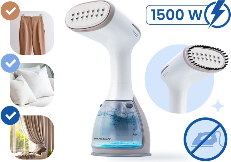 Varm damp eliminerer effektivt bakterier og husstøvmider på tøj, sengetøj og polstrede møbler. Den desinficerer uden kemikalier og reducerer fugt i stoffet, hvilket begrænser mikrobiel vækst. Brug den til frakker, gardiner, puder og sofaer.