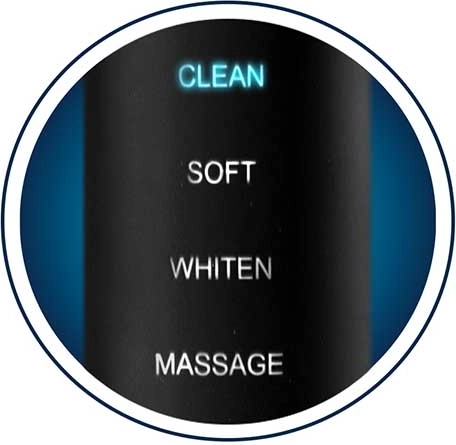 Tilstandene Clean, White, Soft og Massage dækker daglig rengøring, polering for hvidere tænder, skånsom pleje af sensitive tænder samt nænsom massage af tandkødet.