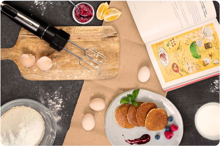 Immersionsblending, hakning, piskning, omrøring/æltning, mosen af puré og smoothie direkte i 600 ml flaske (BPA-fri). Én enhed til kreativ madlavning hver dag.