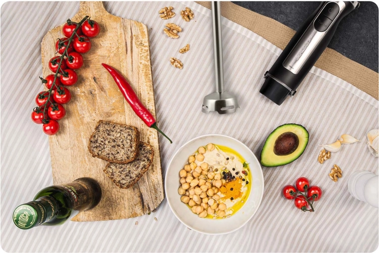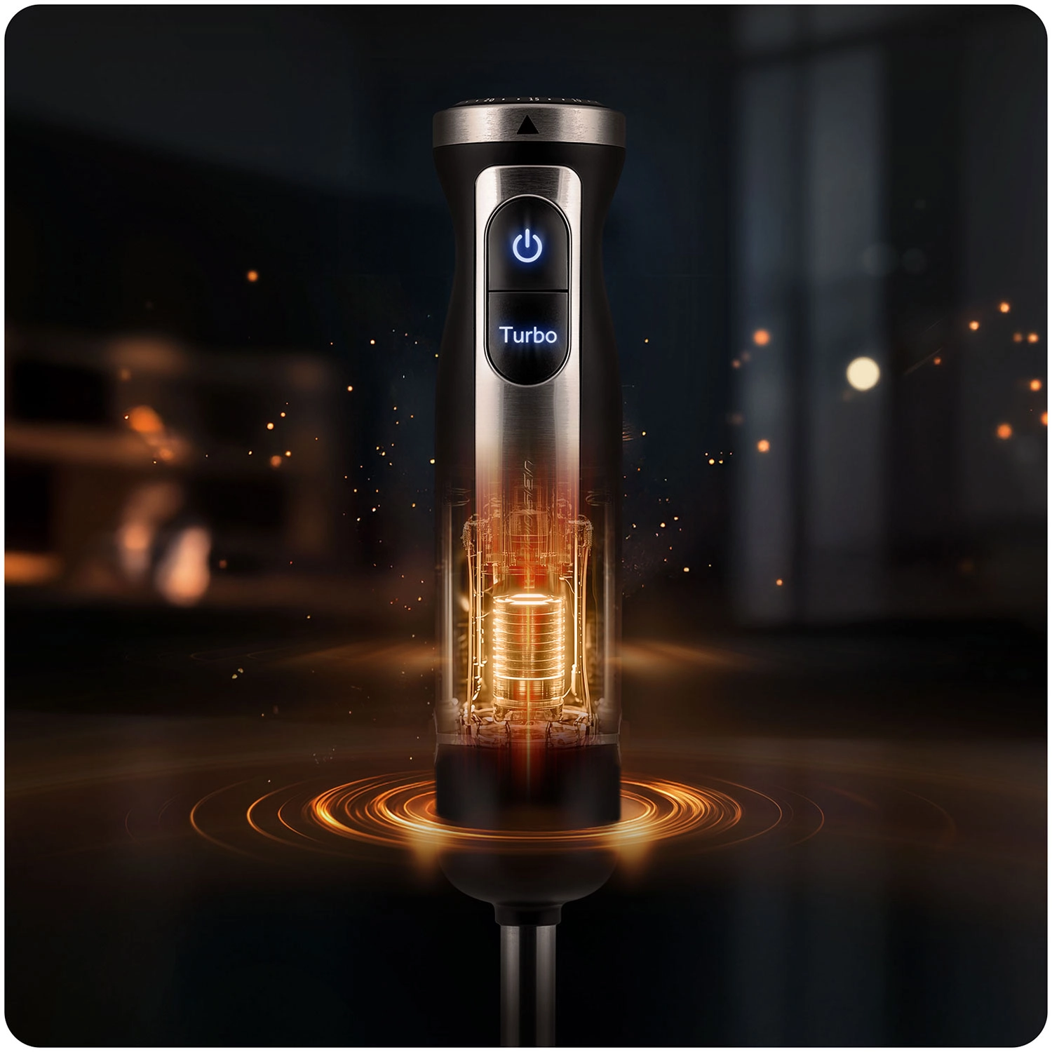 Den kraftige motor med Turbo-funktion øger straks effekten til hakning af nødder, knusning af is eller blending af større portioner. Stabil hastighed og op til 25 indstillingsniveauer.