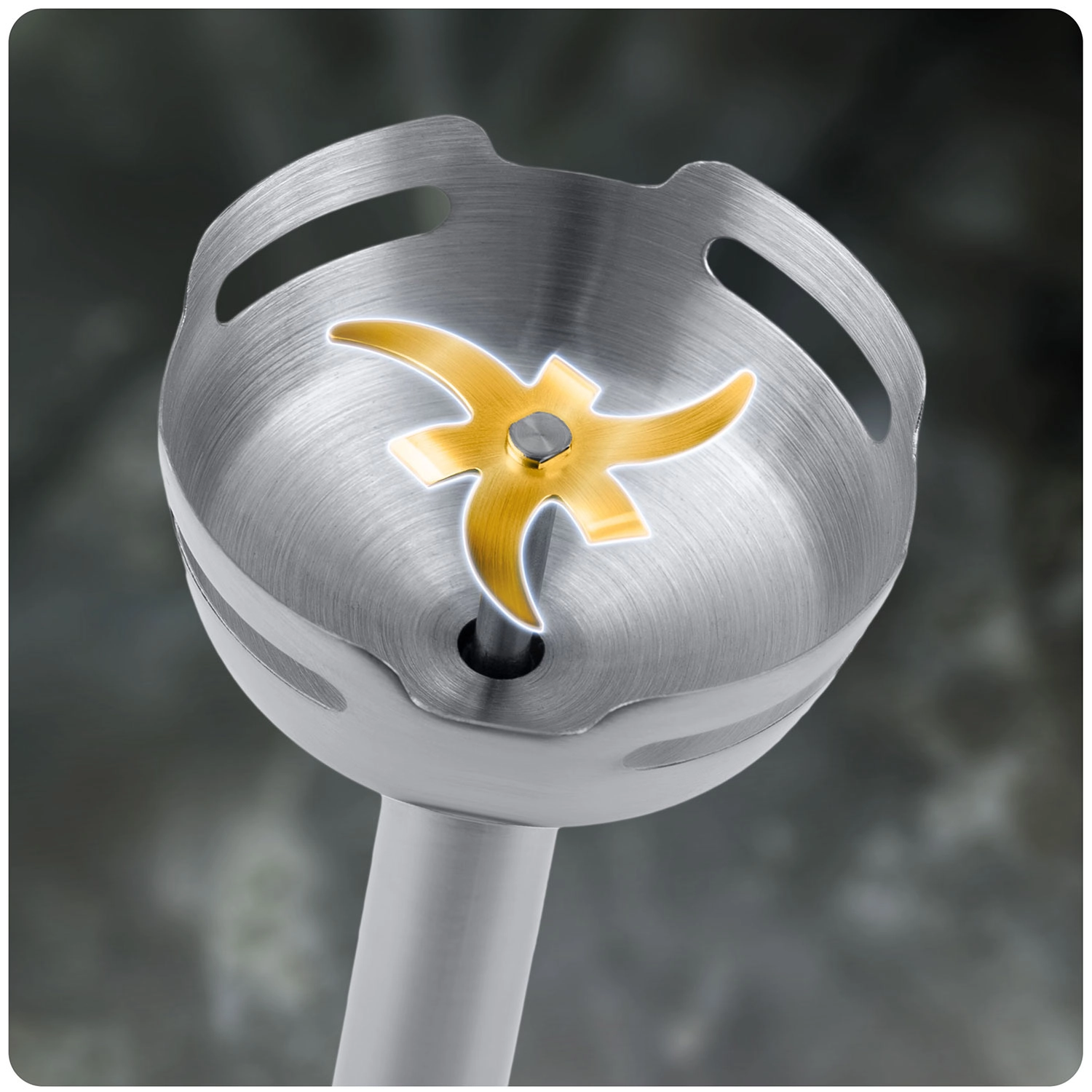 De meget robuste titanblade klarer selv hårde råvarer og er samtidig lette at rengøre. Opnå glatte resultater hurtigere og med mindre indsats.