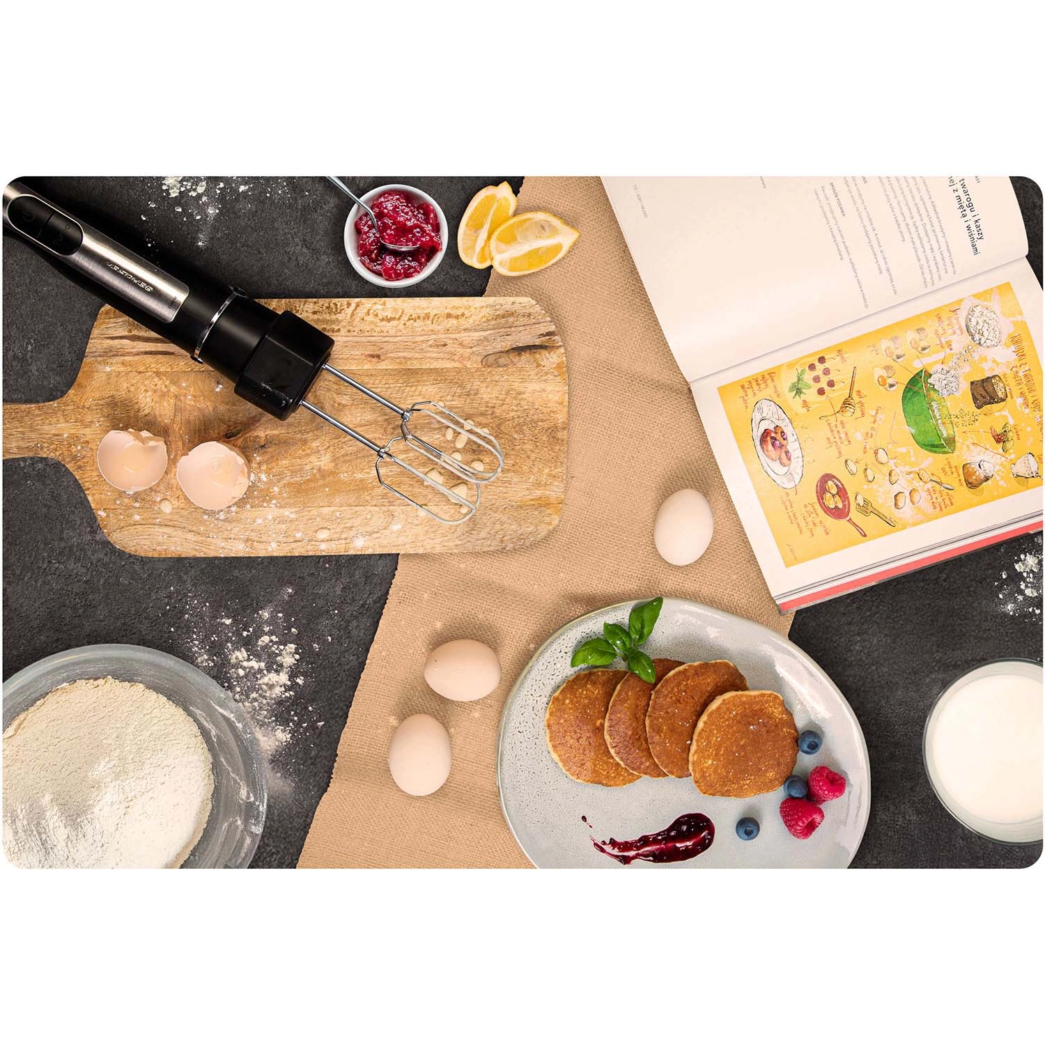 Det ergonomiske hus med skridsikkert greb, udførelse i rustfrit stål og høj byggekvalitet gør dette sæt til et pålideligt redskab til daglig madlavning – fra cremede supper og fine puréer til luftig flødeskum.