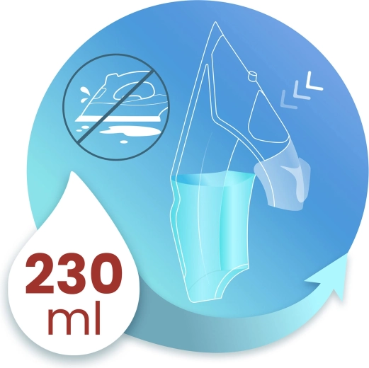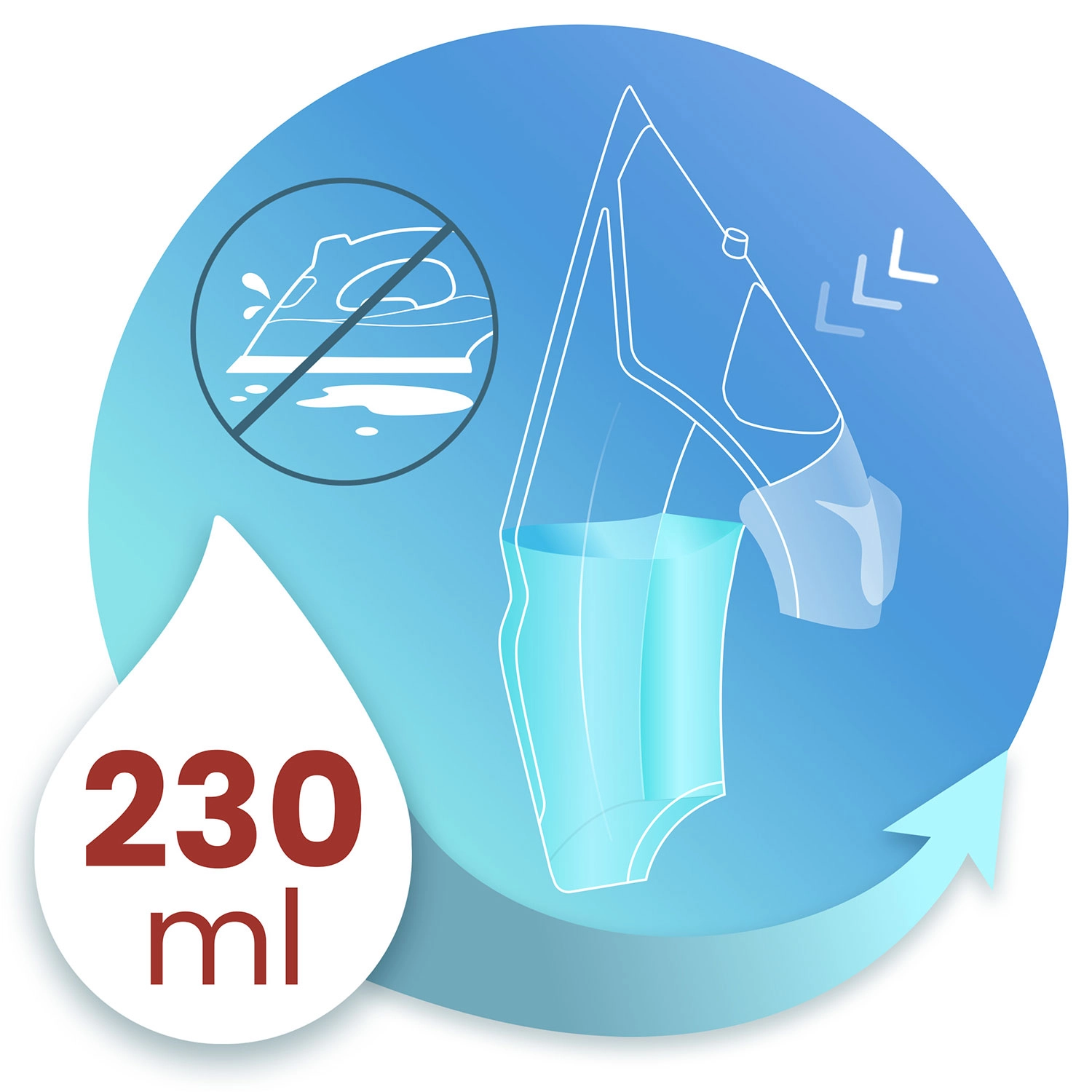 • 230 ml vandtank og spray – længere strygning uden hyppig påfyldning og præcis fugtning.