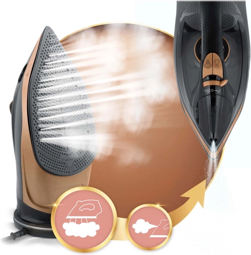 Glid let, ensartet dampfordeling og nem strygning selv på svært tilgængelige steder takket være den præcise spids.