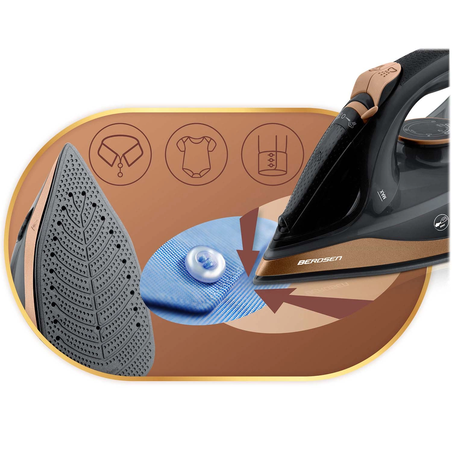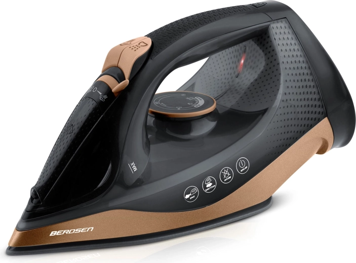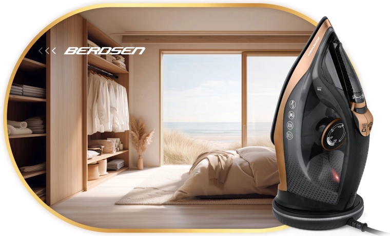 Berdsen-strygejernet kombinerer kraftig ydeevne på 2600 W og en glat keramisk sål med mikrokanaler for jævn dampfordeling. Med lodret dampning kan du glatte gardiner eller tøj på bøjle uden strygebræt. Vandtankens kapacitet på 320 ml og en praktisk sprayfunktion muliggør målrettet fugtning selv af de mest genstridige folder.