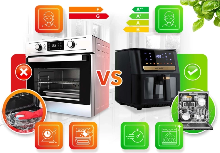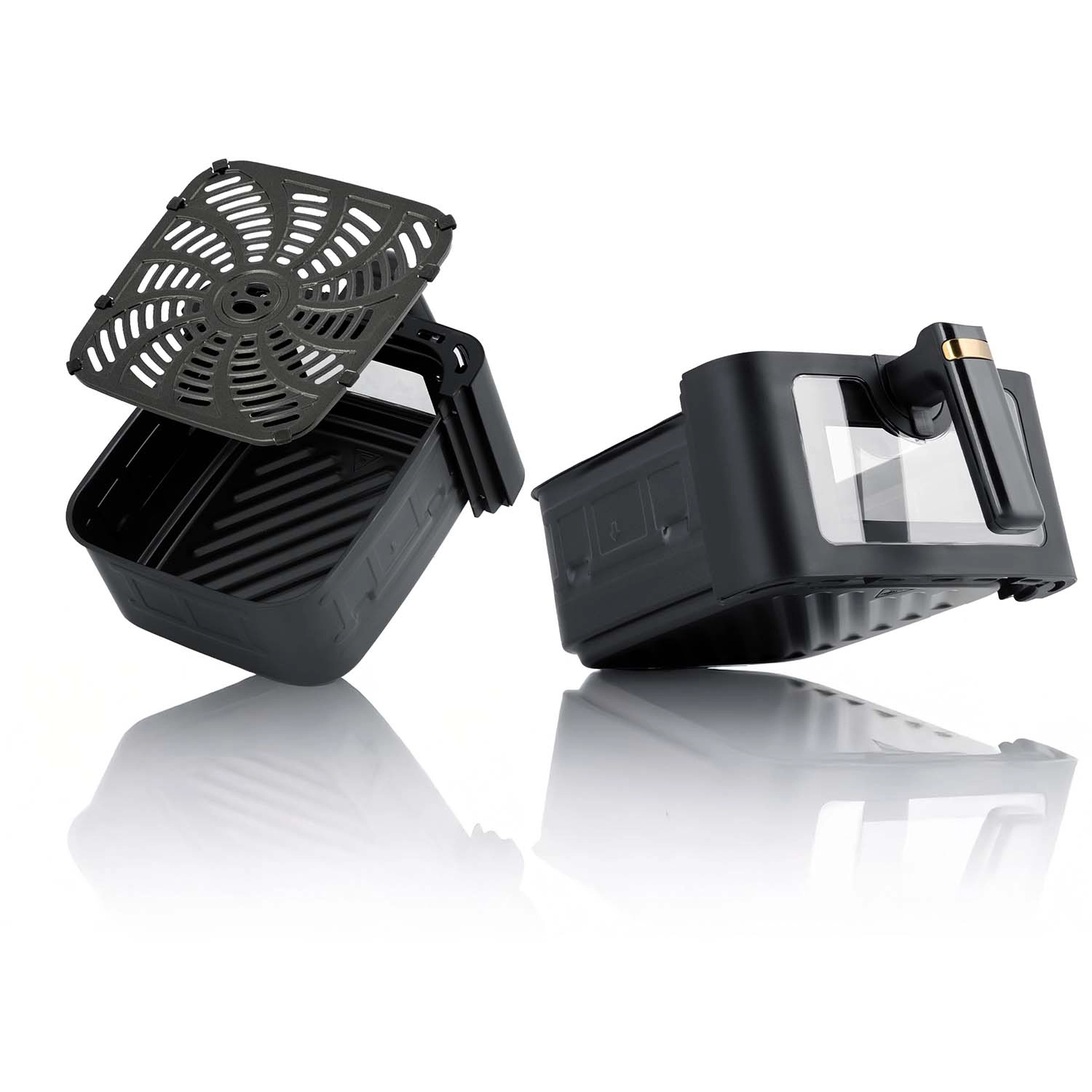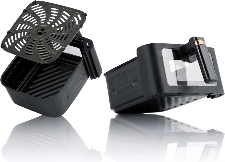 Vælg mellem 8 forudindstillede tilstande (pommes frites, fisk, kylling, rejer, bøffer, kage, pizza, vinger) eller indstil tid og temperatur manuelt op til 200 °C. Nonstick-kurv og rist med PTFE-belægning gør rengøringen let, og delene tåler opvaskemaskine. Sikker drift sikres af varmeisoleret konstruktion, koldt håndtag, overophedningsbeskyttelse og automatisk sluk.