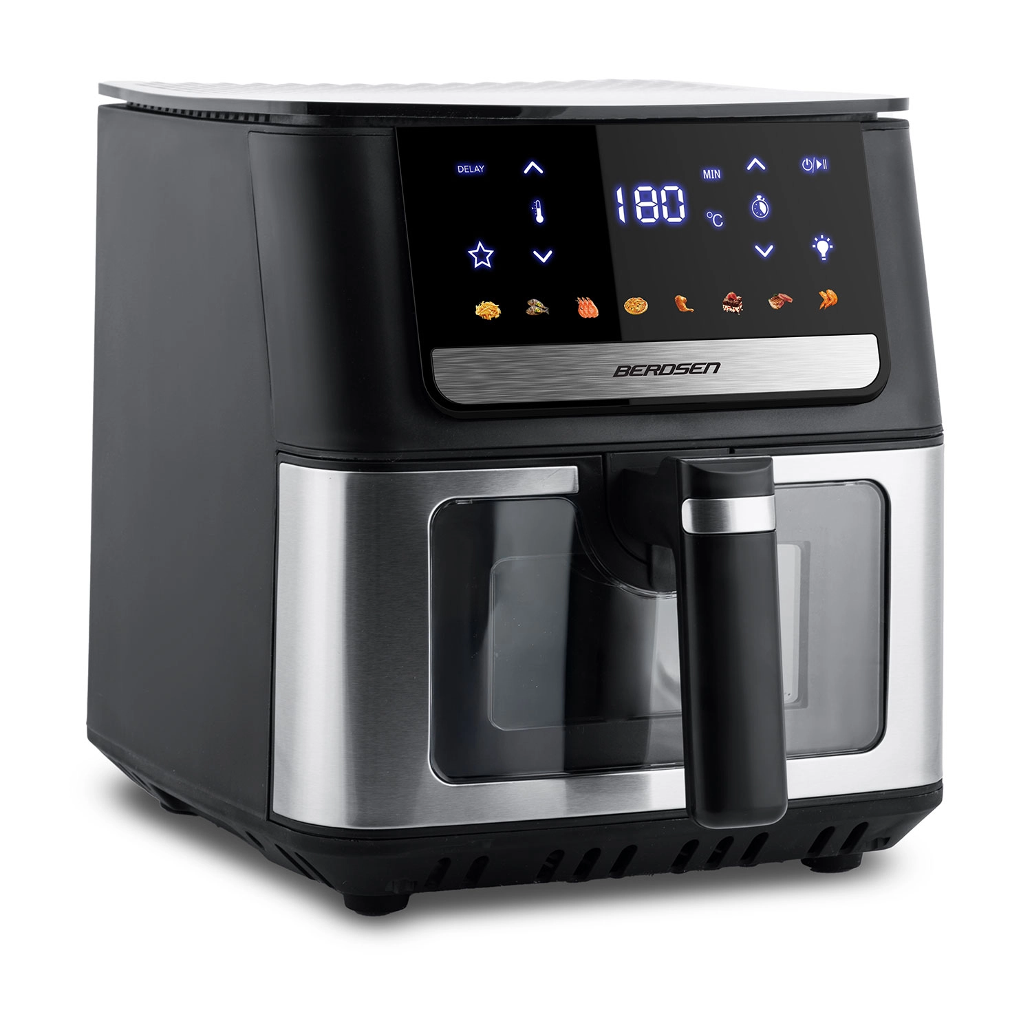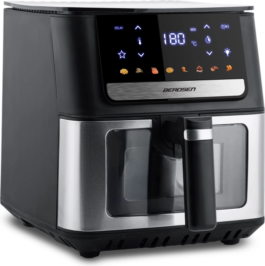 Praktisk erstatningsrist til airfryer med mål 24 × 22,5 cm til modellerne BERDSEN BD-655 og BD-662. Fremstillet af rustfrit stål med nonstick PTFE-belægning for let frigivelse af mad, er opvaskemaskinesikker og sikrer jævn luftcirkulation for sprøde resultater uden unødvendig olie.