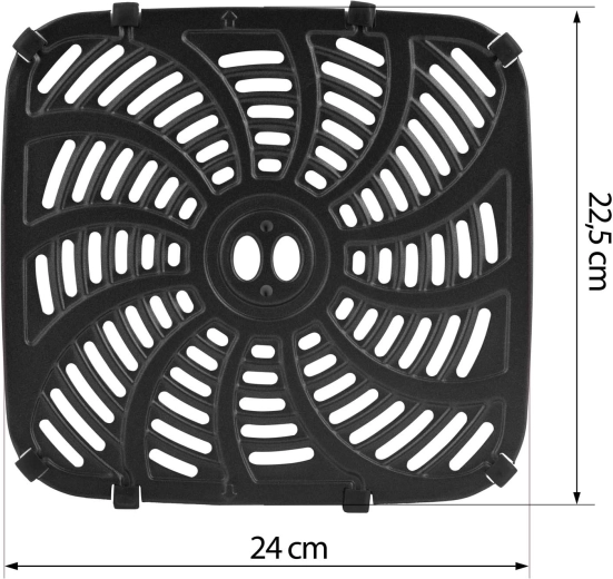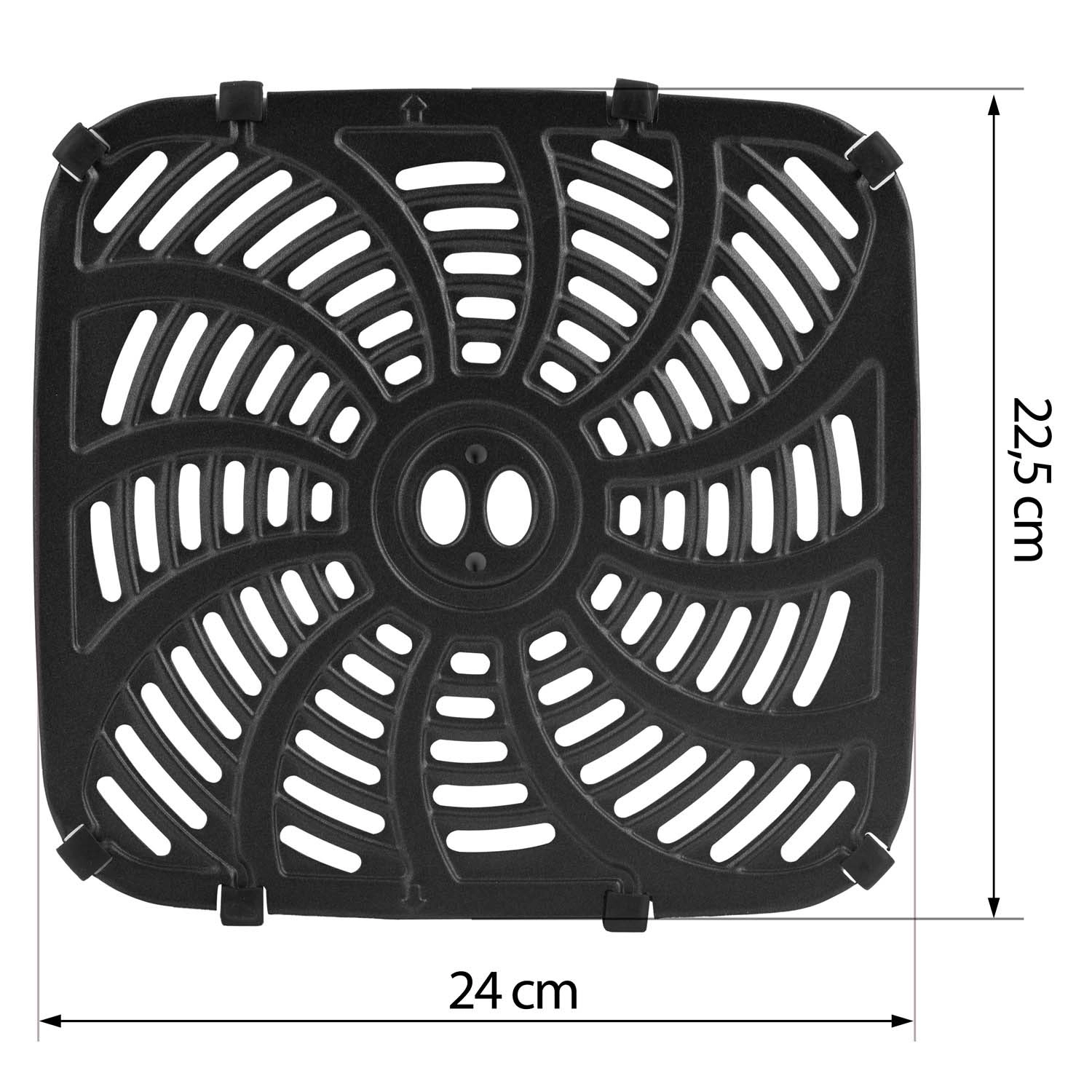 Målene 24 × 22,5 cm passer præcist til de nævnte modeller og understøtter jævn luftcirkulation.