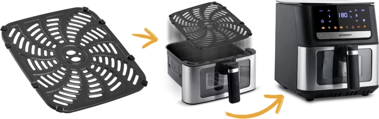 Takket være de præcise mål 24 × 22,5 cm er risten fuldt kompatibel med modellerne BD-655 og BD-662. Den optimerer luftcirkulationen i friturekurven, så pommes frites, kylling og grøntsager bliver dejligt sprøde og ensartet tilberedte.