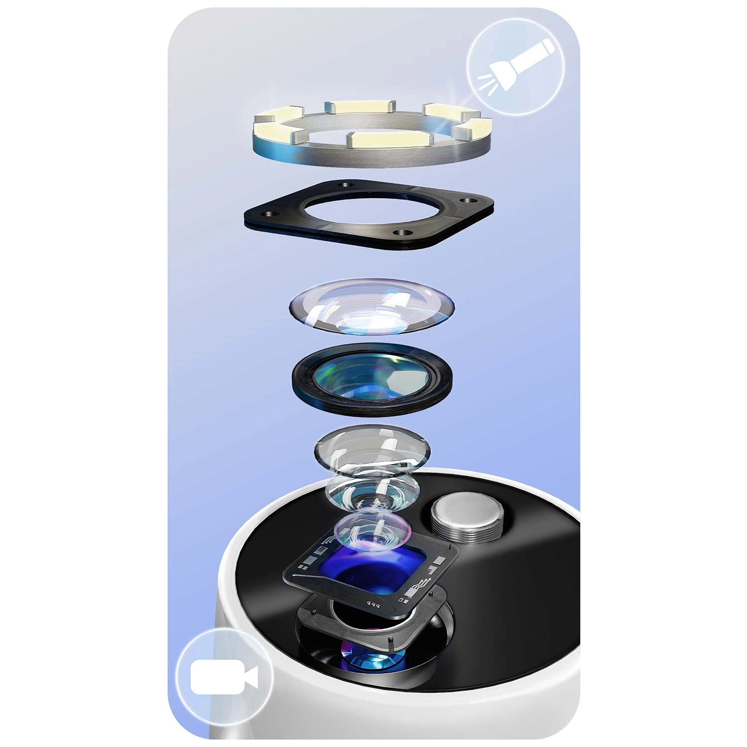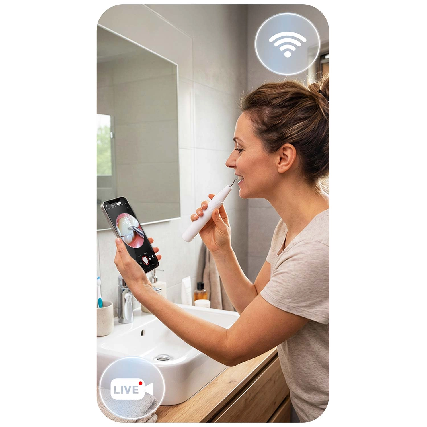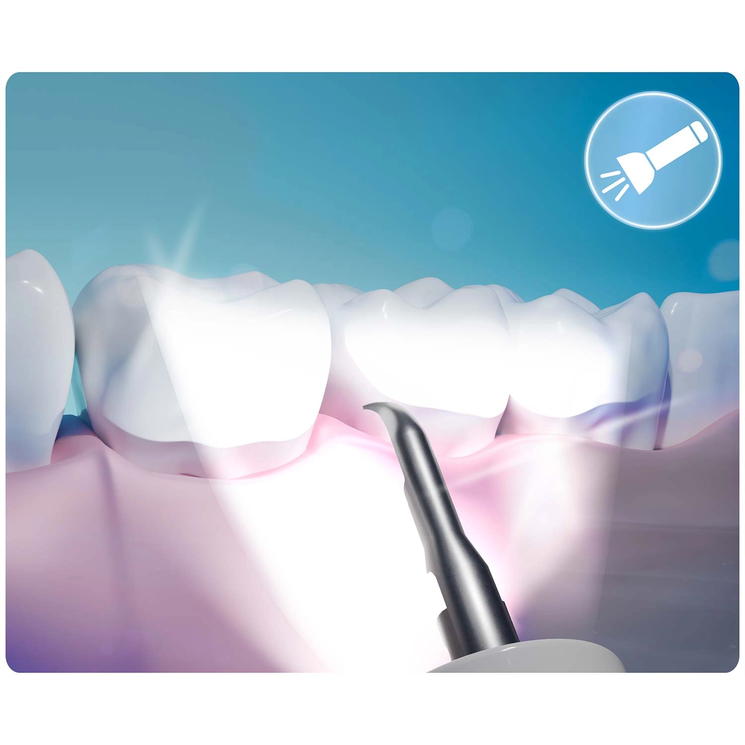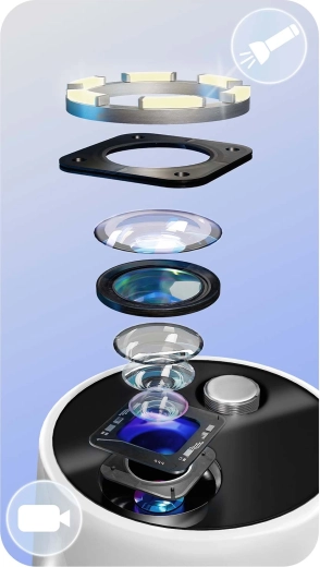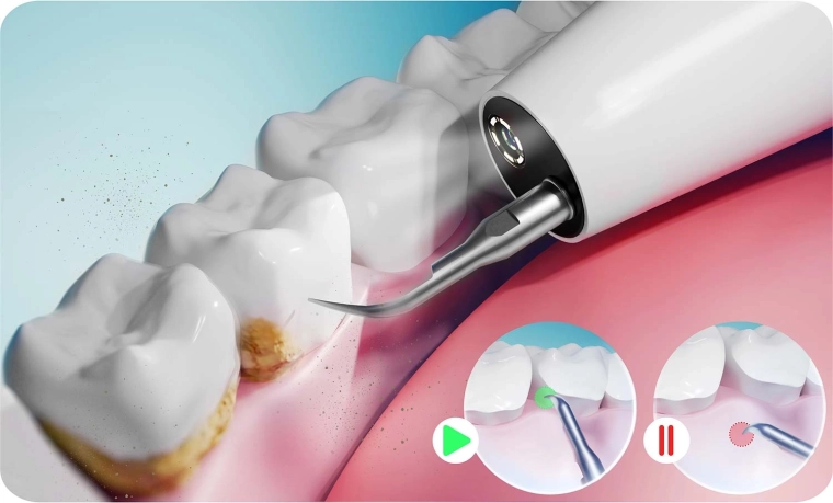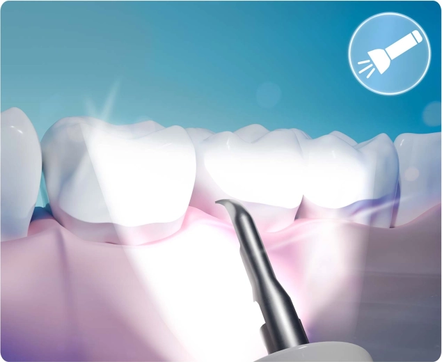 Se hvad du rengør – fuld kontrol og præcision. Det integrerede 2 Mpx kamera med LED-dioder sender live-billede til mobilappen. Så kan du nemt identificere tandsten, misfarvninger og svært tilgængelige områder og fjerne præcis det, der er nødvendigt – uden unødig irritation og gætteri.