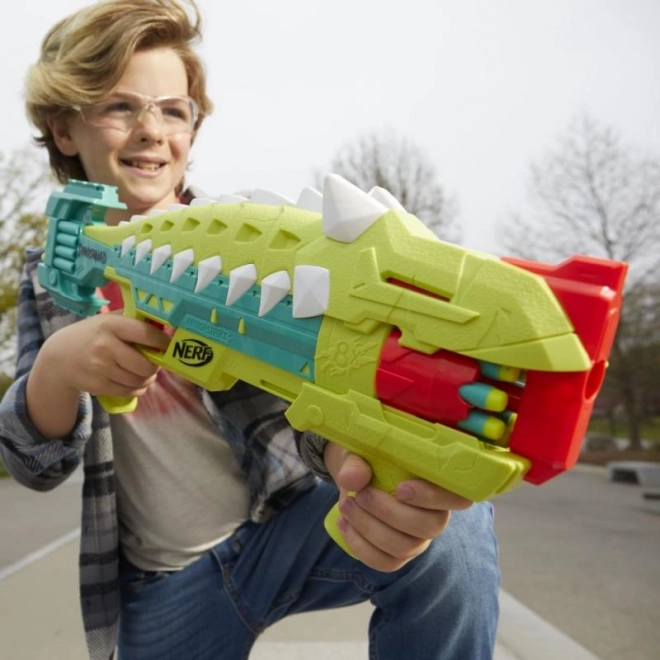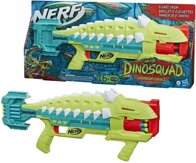 Træd ind i action med børneblasteren NERF DINOSQUAD ARMORSTRIKE, inspireret af ankylosaurus. Den har en roterende tromle til 8 pile, og i pakken får du 16 NERF Elite-pile til uafbrudt leg samt pilholdere på selve blasteren til hurtig genladning. Perfekt til udendørs sjov, sikker action og dinosaur-eventyr for børn fra 8 år.