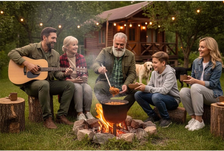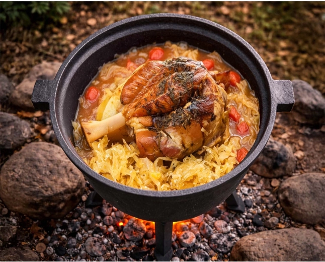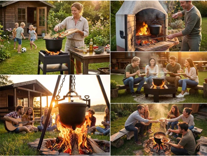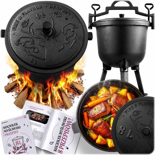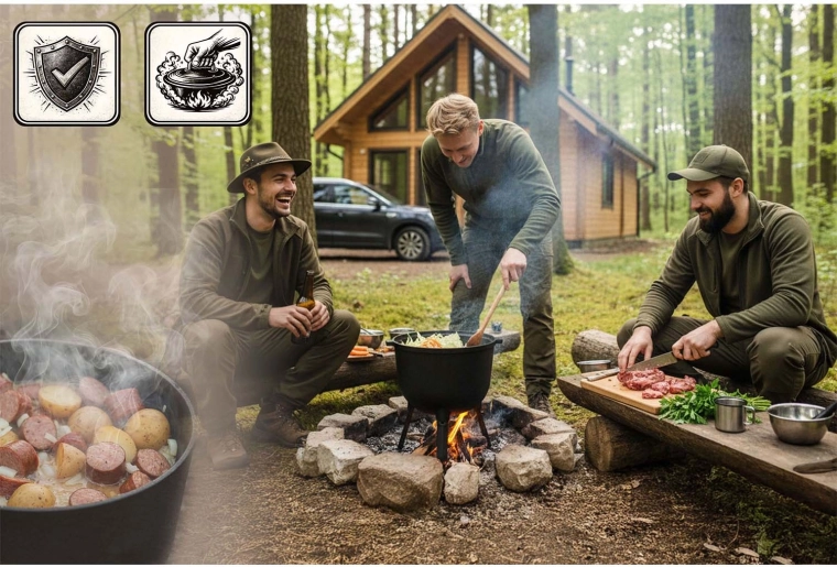 Der medfølger et sæt praktiske opskrifter – fra gullash og spidser i gryden til mættende vintersupper. Kom i gang med det samme og nyd fælles madlavning ved bålet.