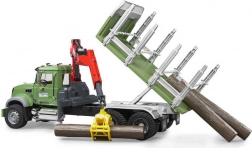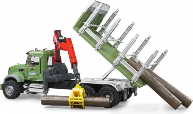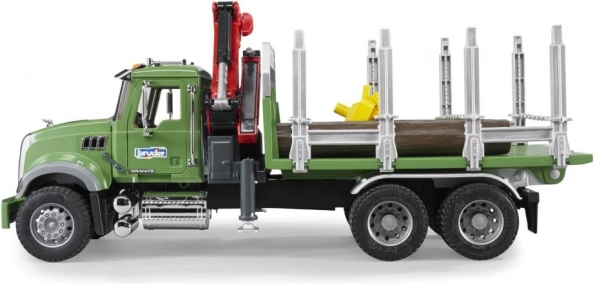 Den robuste model af BRUDER MACK GRANITE lastbil er ideel til realistisk leg med skovdrift og transport af træ. Det gennemsigtige forrudevindue af brudsikkert polycarbonat, åbningsbar kabine og motorhjelm med kig til motoren giver modellen et autentisk look. Stabiliteten ved lastning sikres af udtrækkelige støtteben, og den drejelige kran med grab er let at styre.