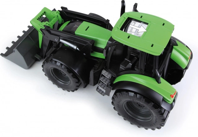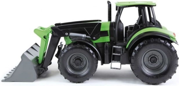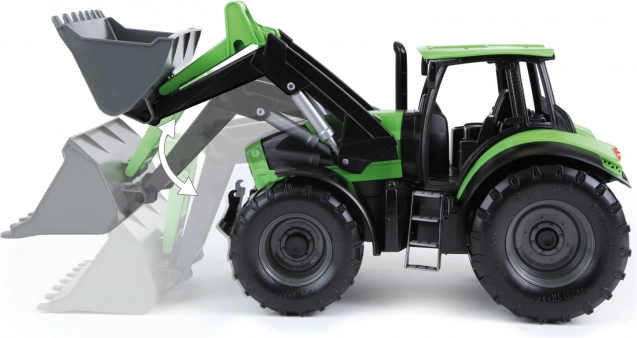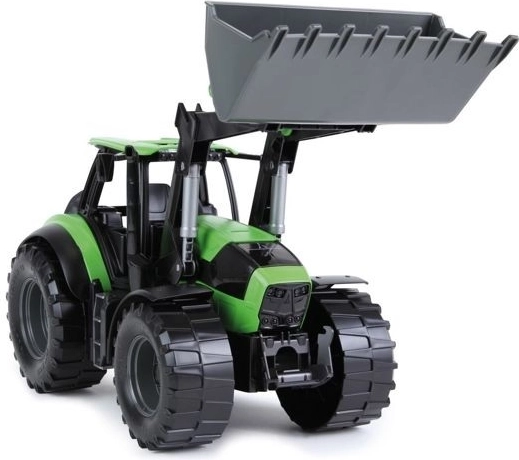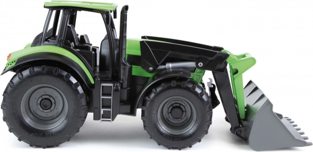 Robust legetøjstraktor med frontlæsser i DEUTZ FAHR Agrotron-design imponerer med realistisk udførelse i 1:15-skala. Den har en funktionel frontskovl, er lavet af kvalitetsplast og egner sig til leg både indenfor og udenfor. Længde 45 cm.