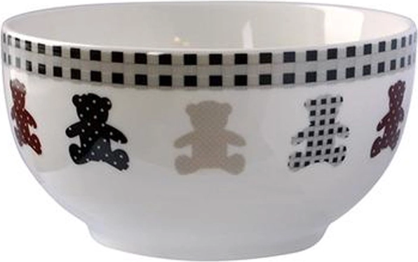 Stilfuld hvid serveringsskål med et sødt bjørnemotiv, som glæder både børn og voksne. Den er praktisk til daglig brug – tåler mikrobølgeovn og opvaskemaskine. Med en kapacitet på 500 ml og kompakte mål på 13 × 6,5 cm er den velegnet til supper, morgenmadsprodukter, desserter og mellemmåltider.
