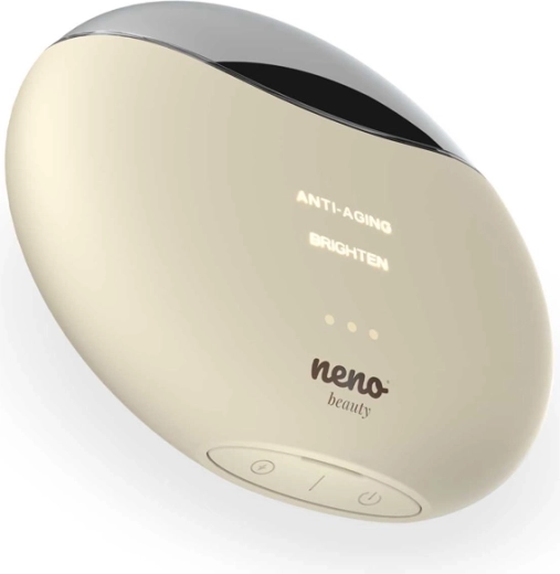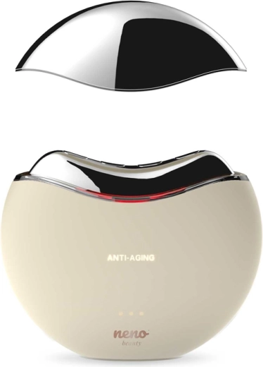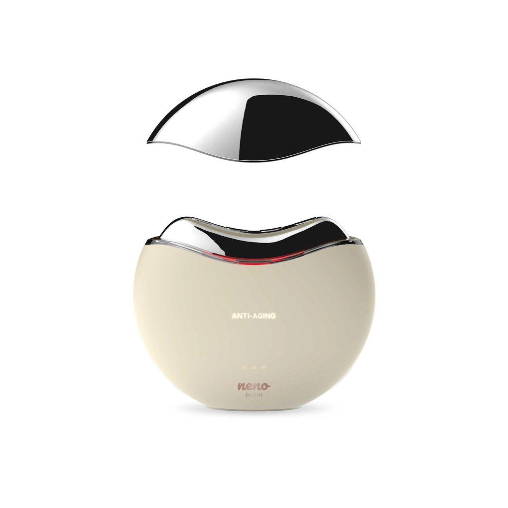 Neno Beauty Auri er en elegant 5‑i‑1 enhed til foryngelse af hud på ansigt og hals. Den kombinerer radiofrekvens, EMS‑mikroimpulser, rødt LED‑lys 620 nm og soniske vibrationer i et ergonomisk Gua Sha‑formet hoved. Takket være to tilstande – Anti‑Aging og Brighten – kan du nemt målrette opstramning af konturer, udglatning af fine linjer og udjævning af hudtonen.