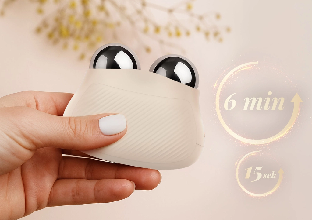 Det ergonomiske dobbelthoved følger naturligt kinder, kæbelinje og hals. Fem intensitetsniveauer, hukommelse for seneste indstilling og en 6‑minutters timer med 15‑sekunders intervaller gør den daglige rutine enklere.