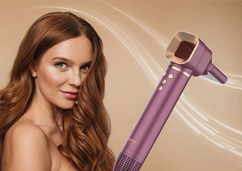 Neno Beauty Vio er en alsidig løsning til daglig styling. Fem udskiftelige tilbehør dækker alt fra express-tørring over udglatning til volumen og blide krøller. Ioniseringsteknologi frigiver op til 800 millioner negative ioner, reducerer statisk elektricitet og efterlader håret blødt, glansfuldt og nemt at forme. Støjsvag drift (ca. 63 dB) og hukommelse af sidste indstilling øger komforten i brug.