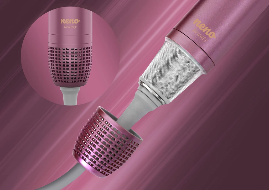 Elegant varmestyler 5 i 1 Neno Beauty Vio kombinerer hurtig tørring, udglatning, volumen og skabelse af krøller i ét apparat. Takket være ionisering for glat glans, hukommelsesfunktion, 4 temperaturtrin, 3 luftstrøms-hastigheder og kold luft opnår du salonresultater med minimal indsats og uden frizz.