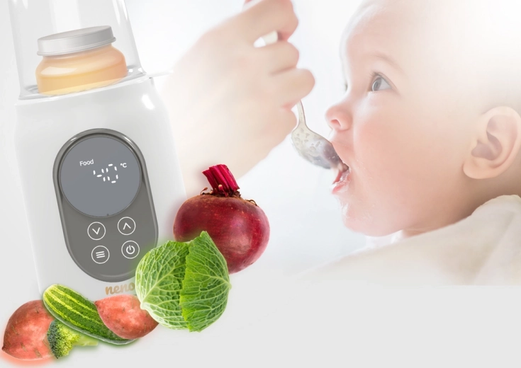Det beskyttende låg og smart temperaturstyring sikrer hurtig og jævn opvarmning af både mælk og babymad uden overophedning.