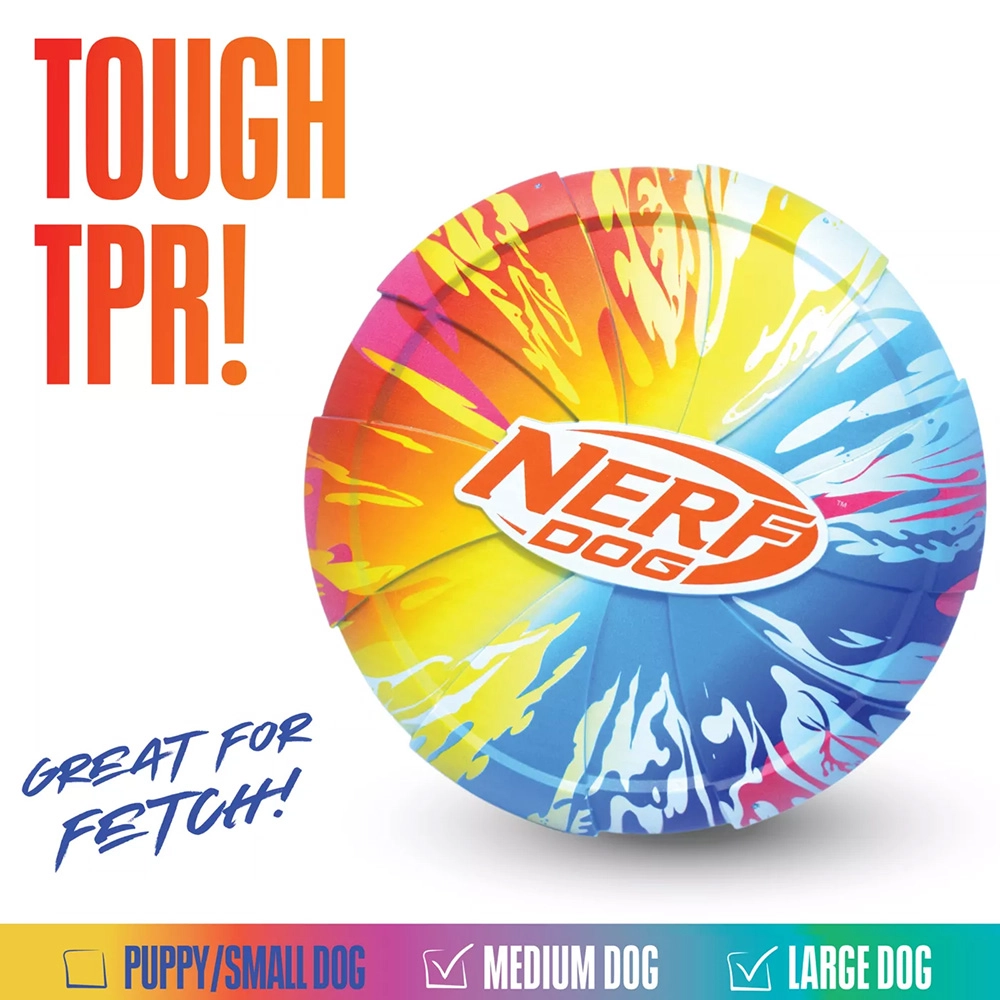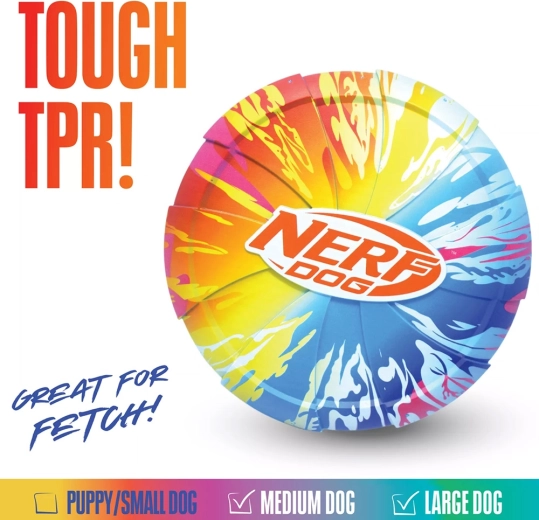 Den flyvende Nerf Dog-disk er designet til hurtig og sjov leg udendørs. Termoplastisk gummi (TPR) kombinerer holdbarhed og fleksibilitet, så den er skånsom mod hundens tænder og tandkød ved greb. Takket være den ergonomiske, teksturerede overflade er disken nem at kaste, og hunden kan let gribe den i luften.
