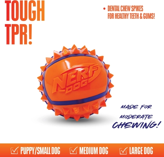 Nerf Dog pigget bold til hunde 9 cm giver hunde bevægelsesglæde og ejere komfortabel kastning og bæring. Den kvalitetsmæssige termoplastiske gummi (TPR) forener styrke, fleksibilitet og holdbarhed, så den egner sig til regelmæssig brug. Takket være de kontrastfulde farver er bolden let at se selv under hurtig leg udendørs.