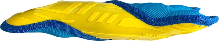 Den kontrasterende gule og blå farve gør det nemt at finde legetøjet ved apport i haven eller parken.