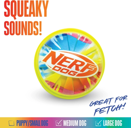 Leder du efter et holdbart og let synligt legetøj til leg ude og inde? Bolden NERF DOG med en diameter på 10 cm kombinerer en solid gummikonstruktion med en tekstureret overflade for et sikkert greb. Indeni er der en pivelyd, som stimulerer den naturlige jagtinstinkt og øger hundens interesse for leg.