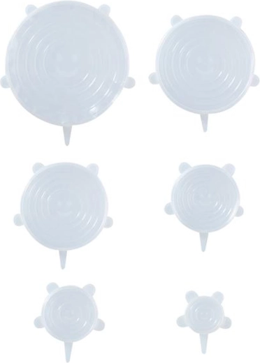 Seks forskellige størrelser dækker alt fra små glas til store skåle. Lågene tåler både høje og lave temperaturer, så du kan bruge dem sikkert i mikroovn, køleskab og fryser. Efter brug kan de nemt sættes i opvaskemaskinen.
