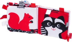 Forbered dit barn på en magisk rejse med at opdage verdens former og mønstre med denne fantastiske bog. Bogen er designet i kontrastfarver som sort, hvid og rød, der er ideelle til visuel stimulering af små børn. Bogen indeholder fire tekstilsider med dyr som fugl, kanin, ugle, ræv, bjørn, egern og vaskebjørn.