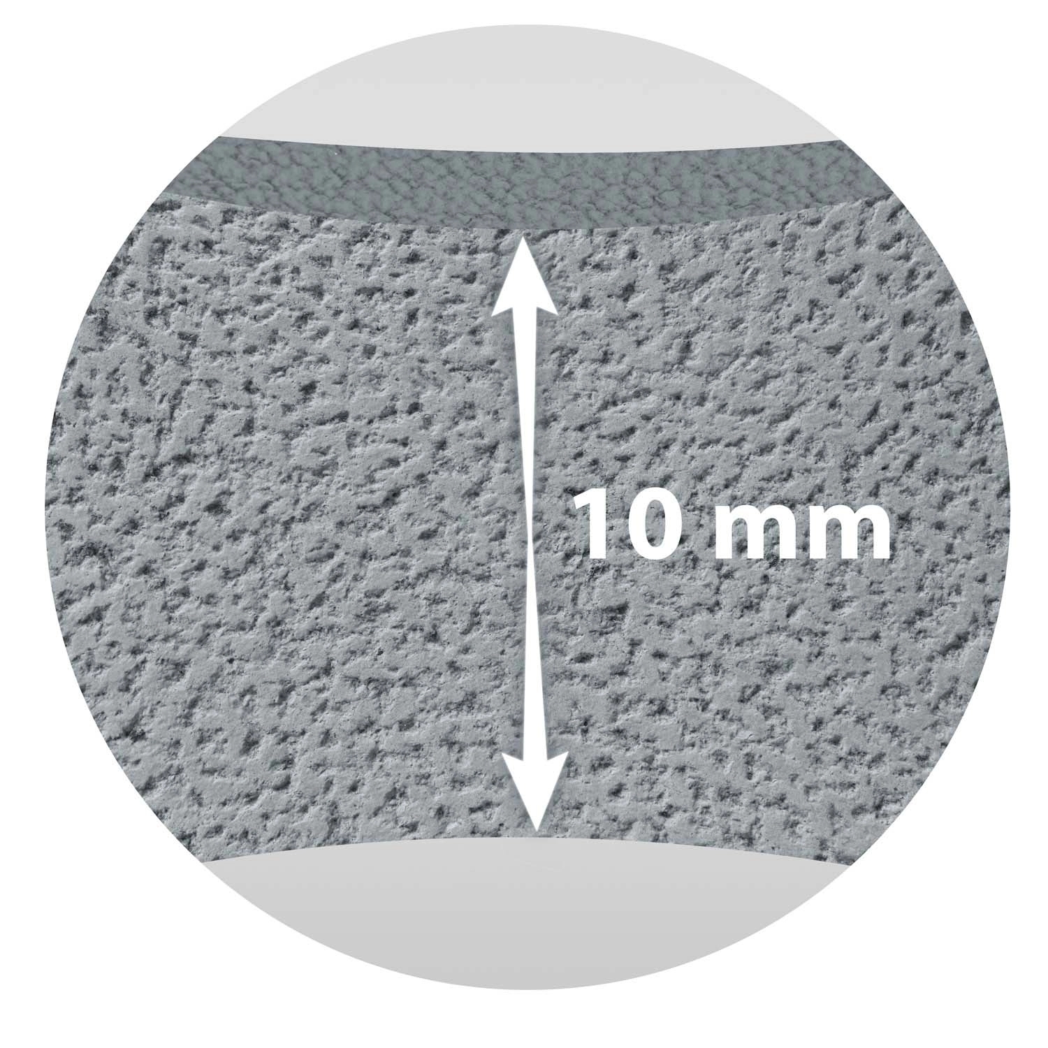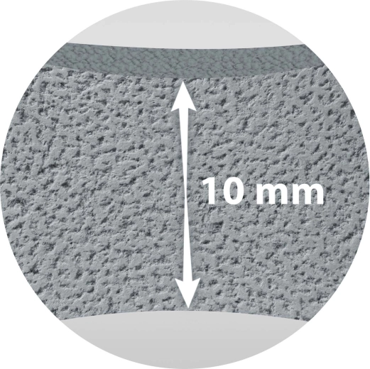 Den teksturerede overflade giver et stabilt fodfæste selv i vådt miljø. Materialet absorberer ikke vand, er let at rengøre og hjælper med at opretholde et hygiejnisk miljø.