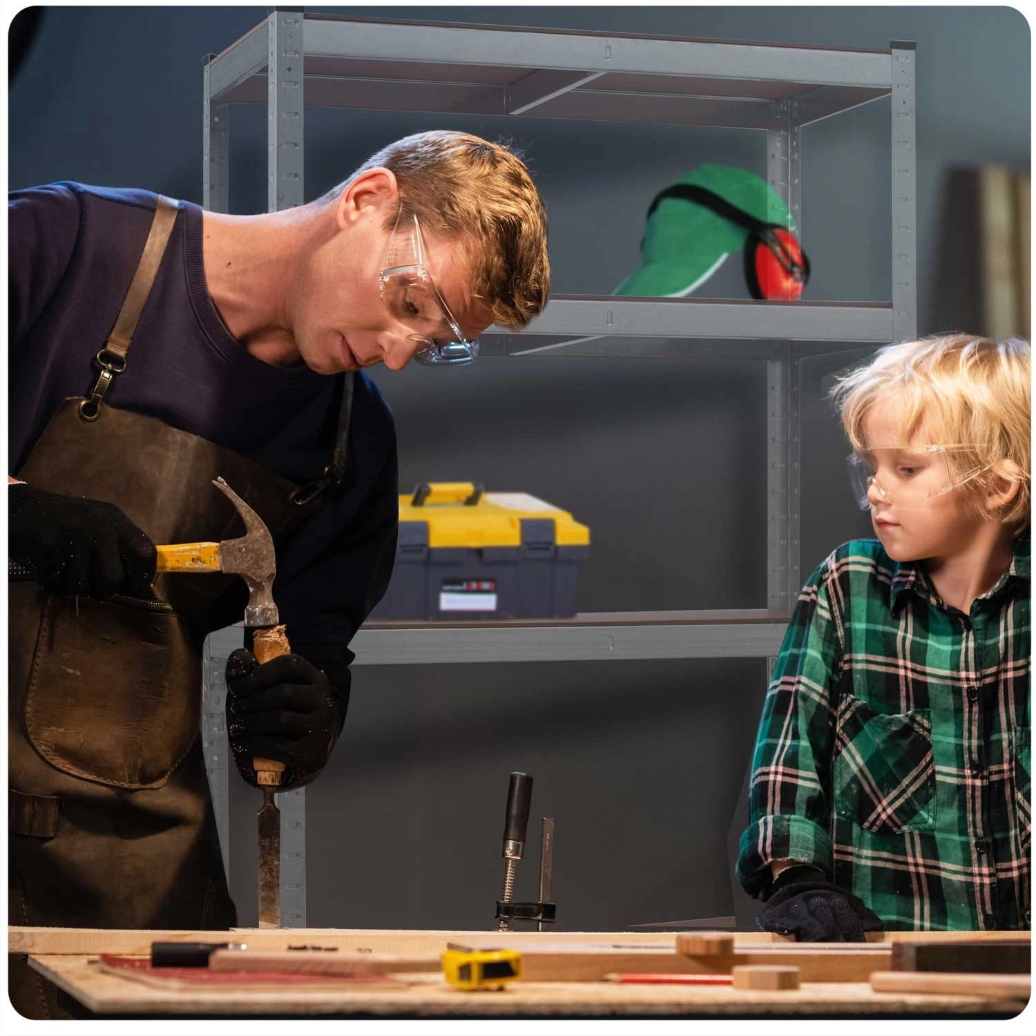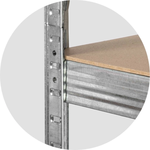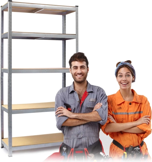 Fem robuste MDF-hylder med midterafstivning bærer op til 175 kg pr. hylde – i alt op til 875 kg. Ideel til værktøj, forsyninger og tungere kasser i garage eller værksted.