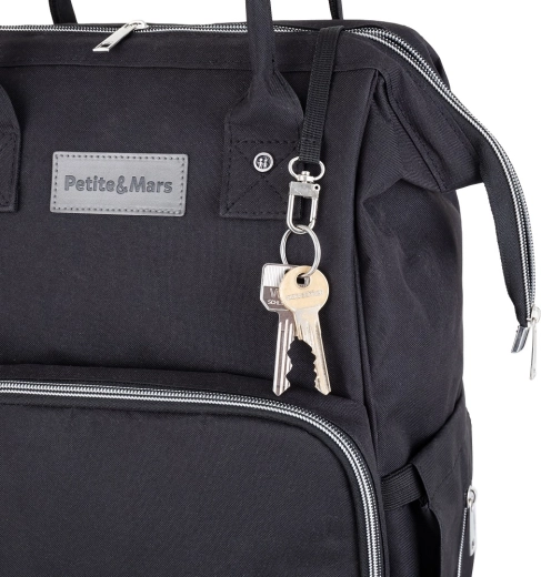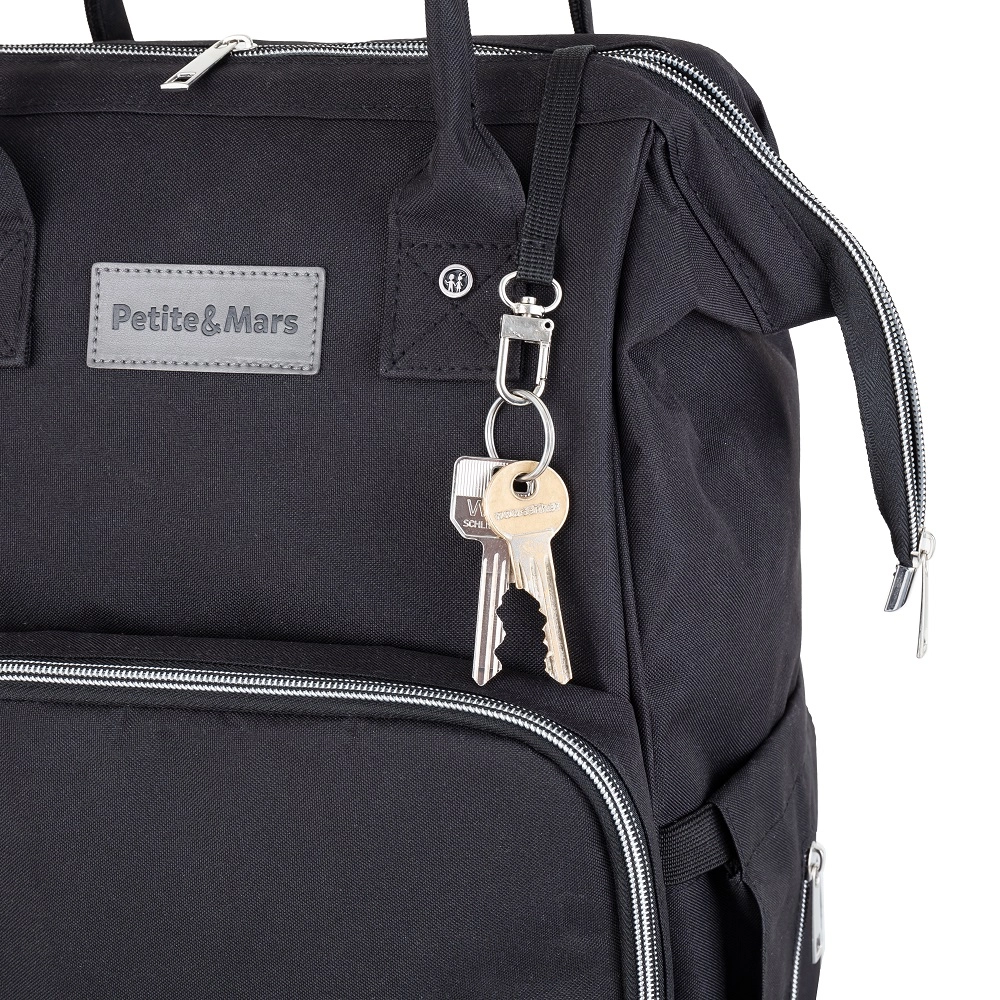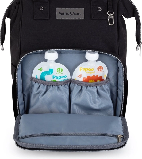Den gennemtænkte opdeling byder på 11 let tilgængelige lommer, inklusive 2 termolommer til at holde flasker tempererede, en vandtæt lomme til vådt tøj eller klude, ydre lomme til flaske og ydre lomme til vådservietter. Der mangler heller ikke en nøglerem, bageste lynlåsåbning for hurtig adgang og en rem til at skubbe over kufferthåndtag på rejser.