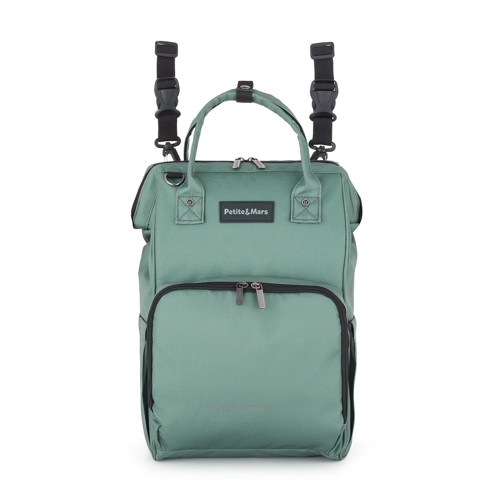 Leder du efter en let og holdbar rygsæk, der holder alle barnets og forældrenes nødvendigheder perfekt organiseret? Petite&Mars Jack Misty Green er designet til at følge dit tempo. Med tovejs-lynlås og bred åbning har du øjeblikkeligt overblik over indholdet, mens lyst for gør det lettere at finde småting.