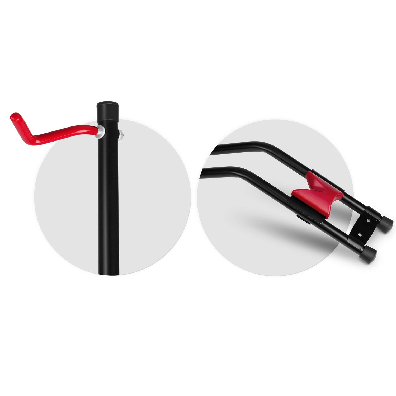 Det praktiske og stabile cykelstativ HUMBREG MB1 gør både service og opbevaring nemt derhjemme eller i værkstedet. Det tilbyder belastning op til 30 kg, fuldt justerbar højde og afstand mellem kroge samt en solid stålkonstruktion med pulverlakering for lang levetid. Muliggør placering af cyklen både vertikalt og horisontalt for maksimal arbejdskomfort og pladsbesparelse.