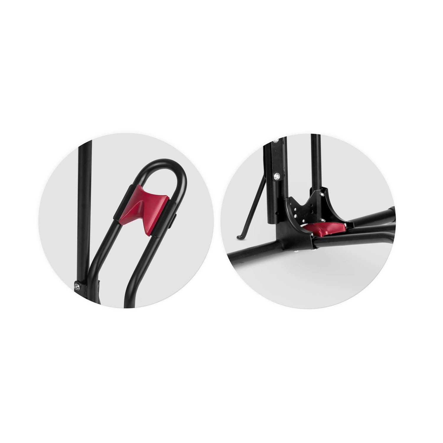Cykelstativet HUMBREG MB1 er en pålidelig hjælper til klargøring af cyklen til kørsel, rengøring og let service. Takket være den robuste stålramme med pulverlak giver det høj stabilitet og modstand mod ridser og korrosion. Justerbar højde og krogafstand gør det muligt præcist at tilpasse grebet til forskellige typer og størrelser af cykler.