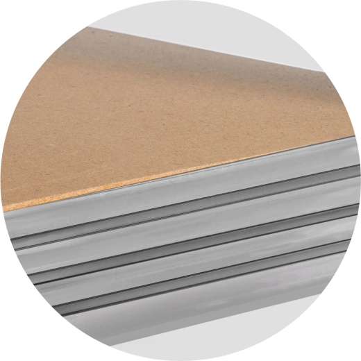 Kombinationen af MDF og galvaniseret stål sikrer stabilitet, jævn overflade og lang levetid selv ved daglig brug.